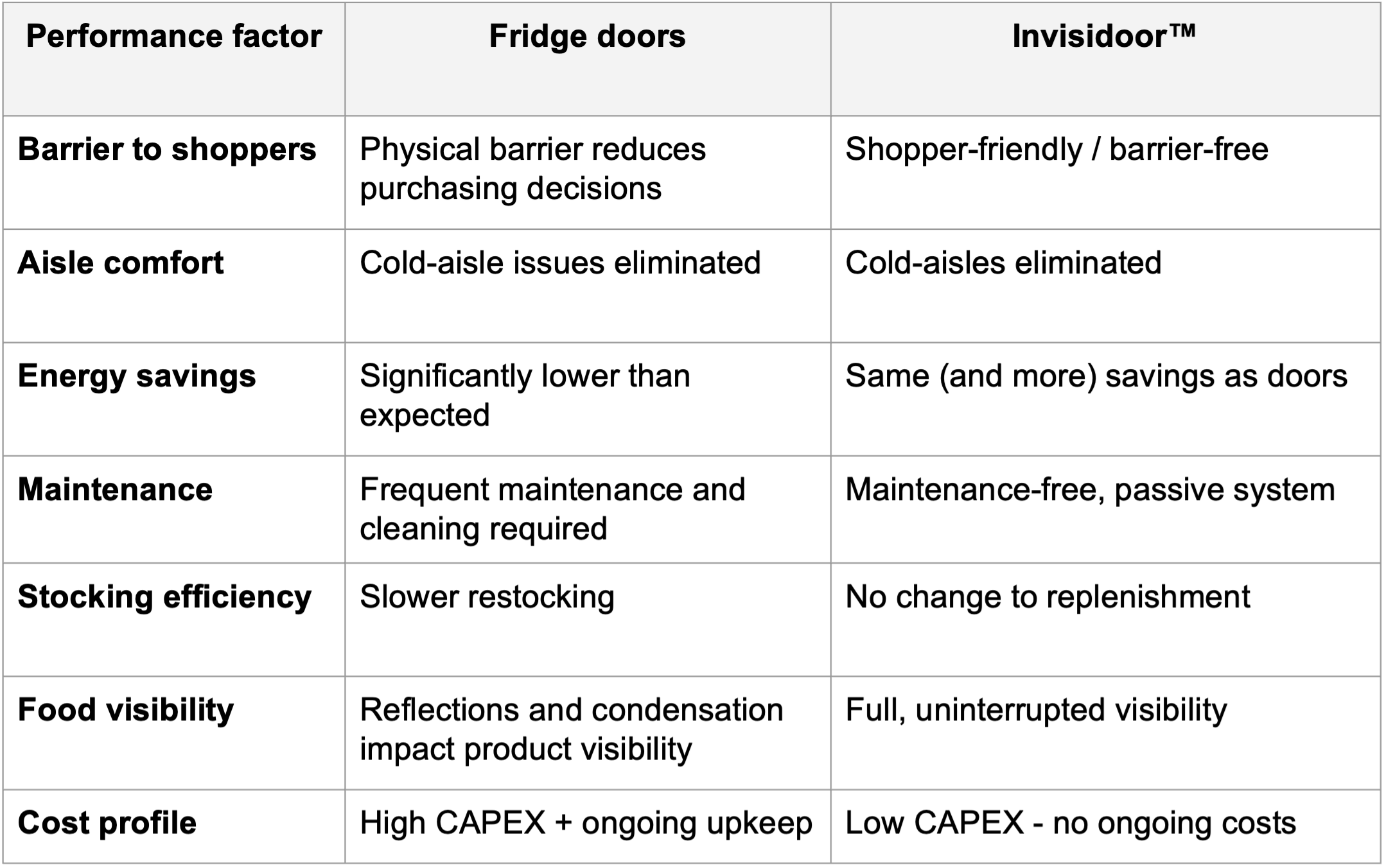 Invisidoor provides measurable improvements in refrigeration performance that directly support operational cost targets: